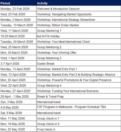 Participants engage in a dynamic combination of online learning, mentoring, and a five-day intensive face-to-face workshop in Melbourne, Australia.